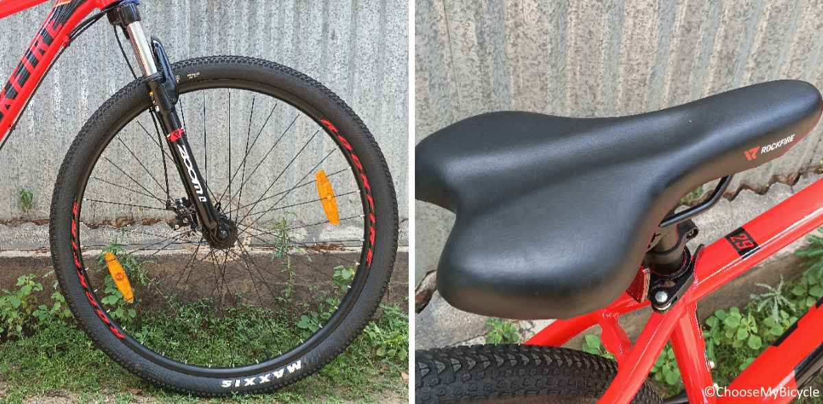 The Rockfire Ridge 29 rolls on a pair of Maxxis Pace 29” x 2.1” tires. These tires were treaded heavily and perfectly suited for the rough and wet trails. High speed turns and jamming of the brakes were transformed well into a balanced reaction on these pair of tires. The Rockfire stock saddle was shaped ergonomically with the perfect length and width.