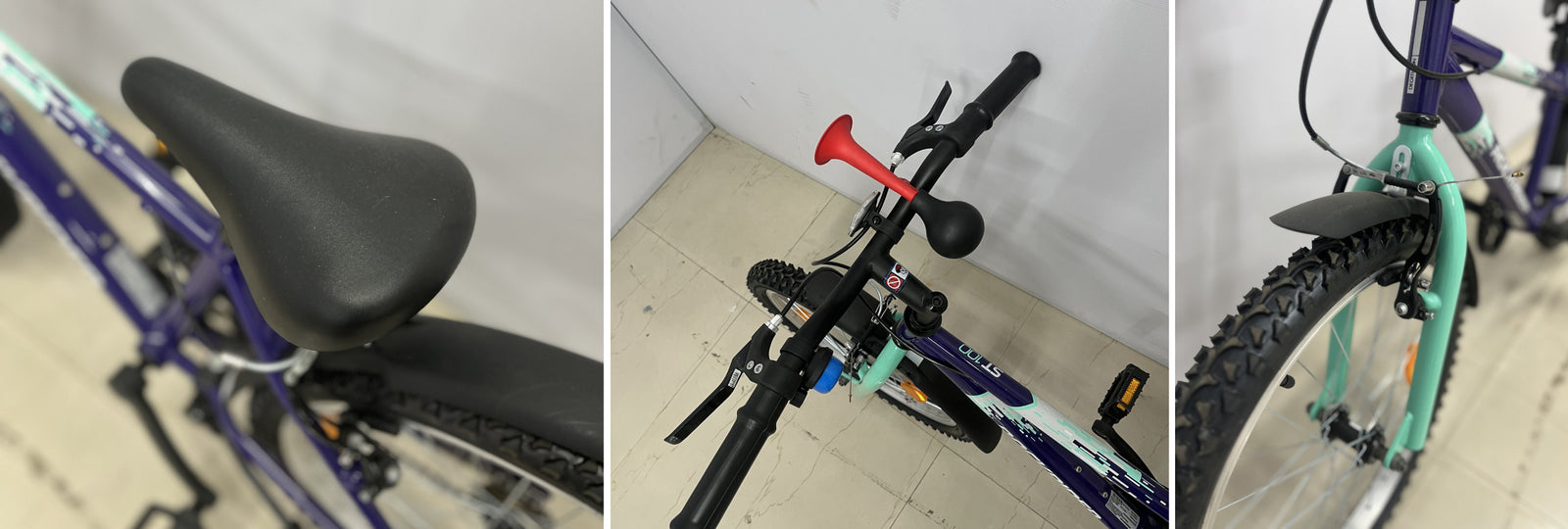 Comfort is clearly a priority in the design of the Rockrider ST100. The soft handlebar grips ensure minimal strain on the palms during longer rides, and the slightly raised handlebars aid upright riding, which helps in better visibility and control.