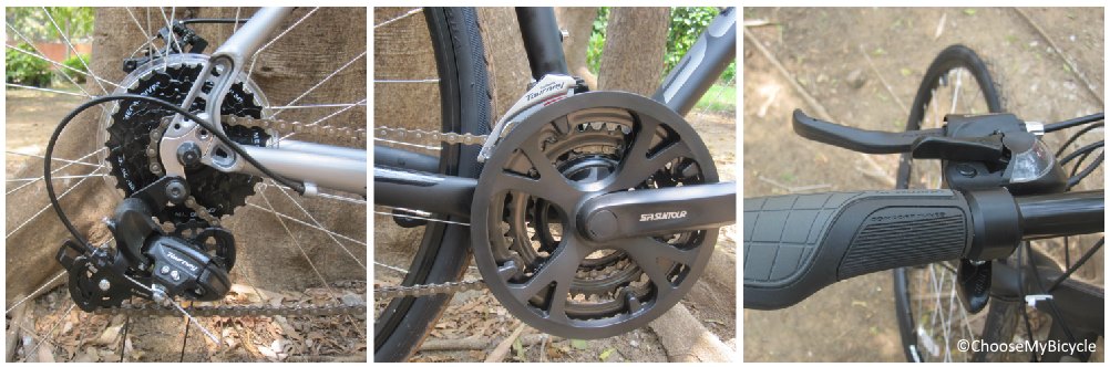 The Schwinn Super Sport comes equipped with Mechanical Disc Brakes. The brakes worked efficiently, ensuring powerful braking while staying stable. Both Interval braking and abrupt braking felt secure and solid. The Brake Levers were placed well within reach, requiring only two or three fingers to operate. The brake levers required only a light pull to ensure effective braking. These brakes work effectively on both wet and dry surfaces. The bicycle comes equipped with a Schwinn Sport Steel handlebar. The width of the handlebar enables a comfortable ‘open-chested’ riding position as well as superior control and maneuverability of the bicycle in traffic and crowded riding conditions. The handlebar grips were fairly cushioned and worked well to ensure minimal transfer of vibrations from the handlebar to the hand and arms while riding. A steel handlebar though, could add to the weight of the bicycle.