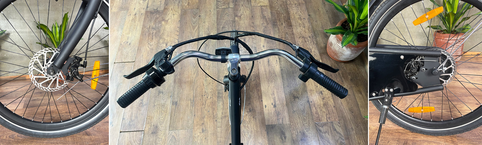 The TILT E1 Lite, which is equipped with front and rear mechanical disc brakes. These brakes are not reliable, the stopping power in various weather conditions does not give the rider confidence and control. The brake levers are hard and thick to handle for traffic commutes. The braking system requires maximum effort, making it non ideal for urban environments where sudden stops may be necessary.Steering is precise and intuitive, thanks to the bike's well-designed geometry and responsive front fork. The TILT E1 Lite handles well in tight spaces, making it easy to navigate through city traffic or crowded bike paths.