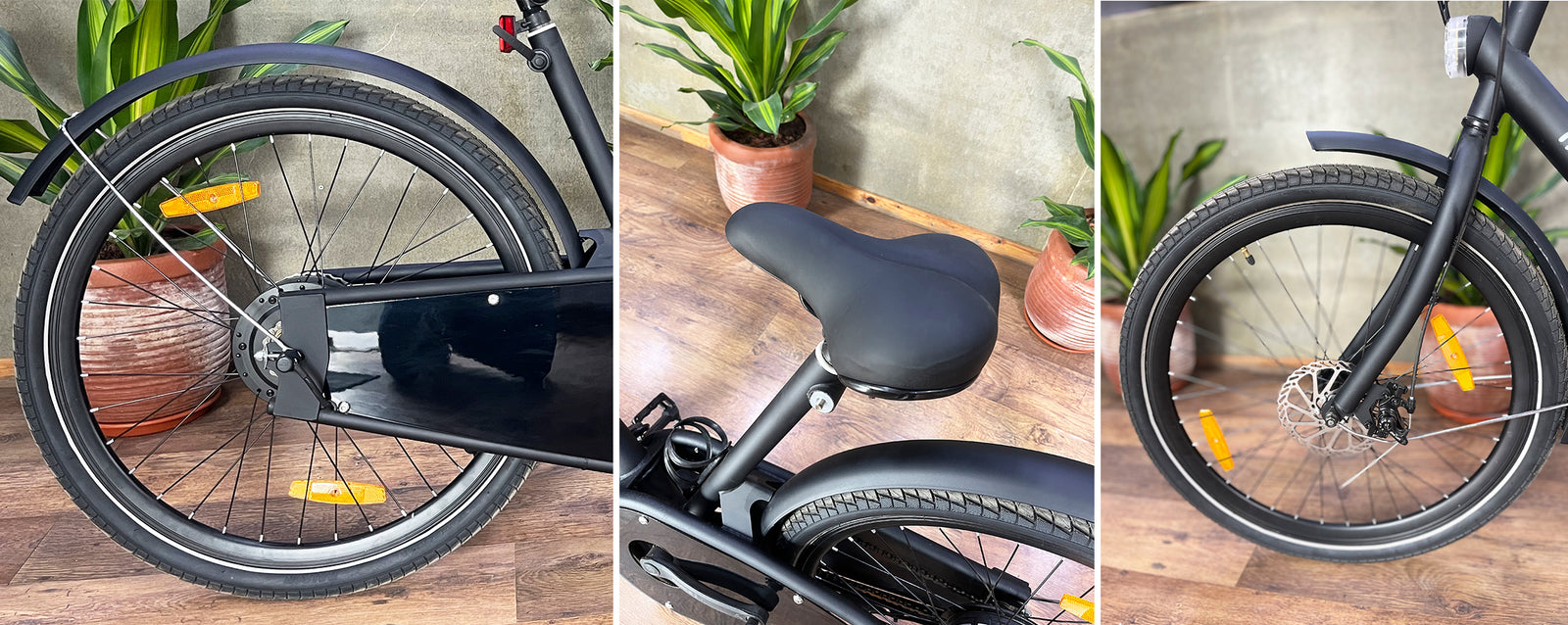 Comfort is a key feature of the TILT E1 Lite, with its upright riding position and well-padded saddle ensuring a pleasant experience over longer distances. The ergonomic handlebars and grips are designed to reduce strain on the rider's hands and wrists, while the rigid fork non -effectively absorbs shocks from rough roads, contributing to a less smoother ride.The saddle is adjustable, allowing riders to find their optimal position, which is crucial for maintaining comfort during extended rides. The bike also comes with wide tires that provide additional cushioning and stability, further enhancing the overall comfort level.