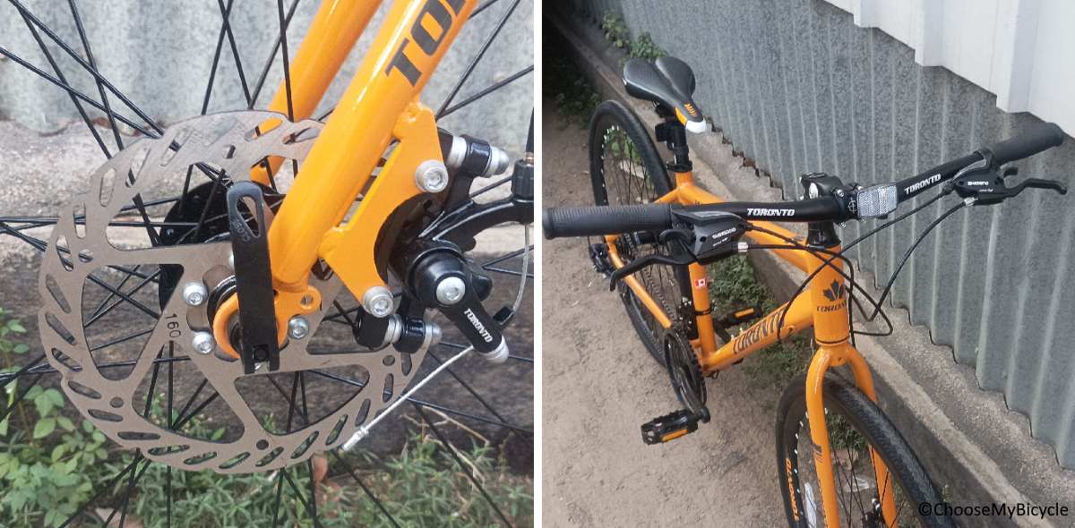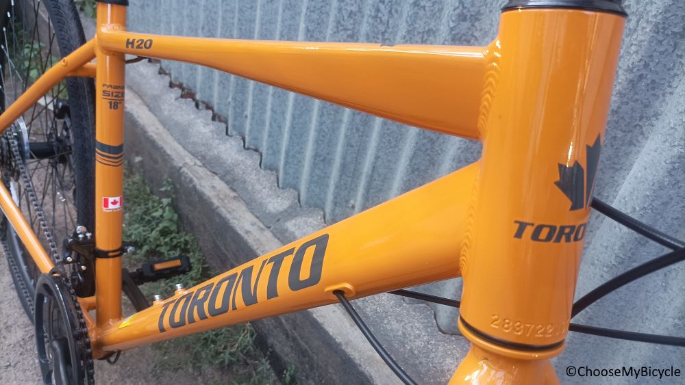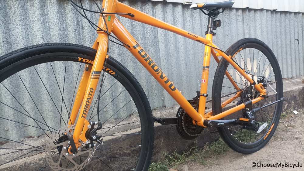 The Toronto H2 is a good-looking Hybrid Cycle. The frame design and eye catchy tube profiles, along with smooth welds, translates to the Toronto being an aesthetic Hybrid. The Bicycle which we test rode came in a full Orange primary colour with Black as the secondary colour for graphics and text. The gloss finish paint job was top notch in quality.