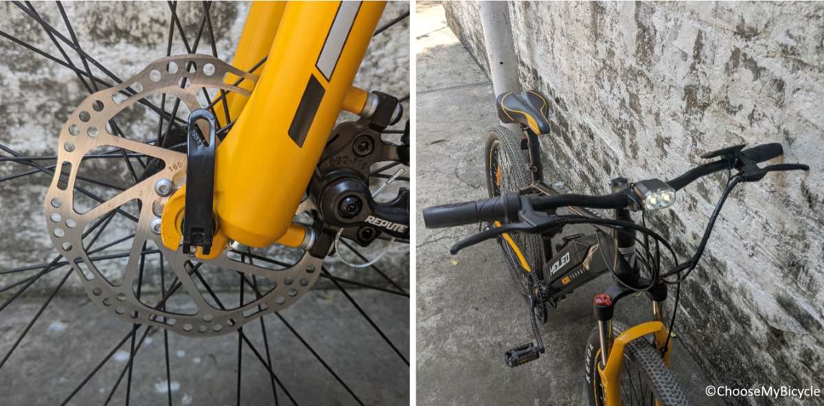 The Heileo M2's stopping power is handled by Repute branded Mechanical Disc brakes at the front and rear. This is a performance focused brake component and provided powerful stopping power during the test ride.The handlebar on this Electric Bicycle was of perfect length to give an open chested riding posture and easy manoeuvring. The grips are cushioned for added comfort.
