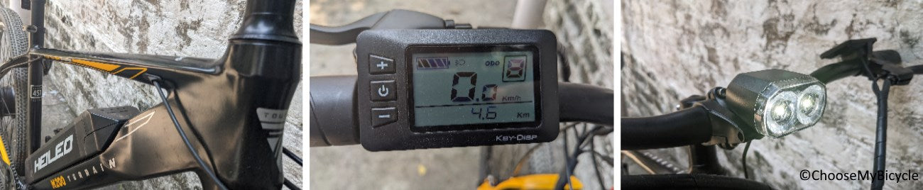 The Helios M2 9.6AH which we test rode came in a full Black frame with Yellow and White as the secondary colours for graphics and text. The matte finish paint job was smooth and premium in quality. The shape of the battery and the bottom tube ensure they blend in as 1 piece in an aesthetic manner. The LCD console was bright, edgy and aesthetic in design.