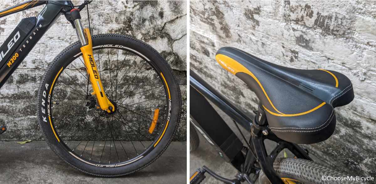 The Heileo M2 9.6AH edition rolls on a pair of 27.5” x 2.1” Kenda tires. These tires are heavily treaded and fast rolling, making them perfect for rough/smooth roads and trails. These rims are double wall which is strong enough to handle rough roads.The stock saddle from Helios was aesthetically designed for long and soreness free rides.