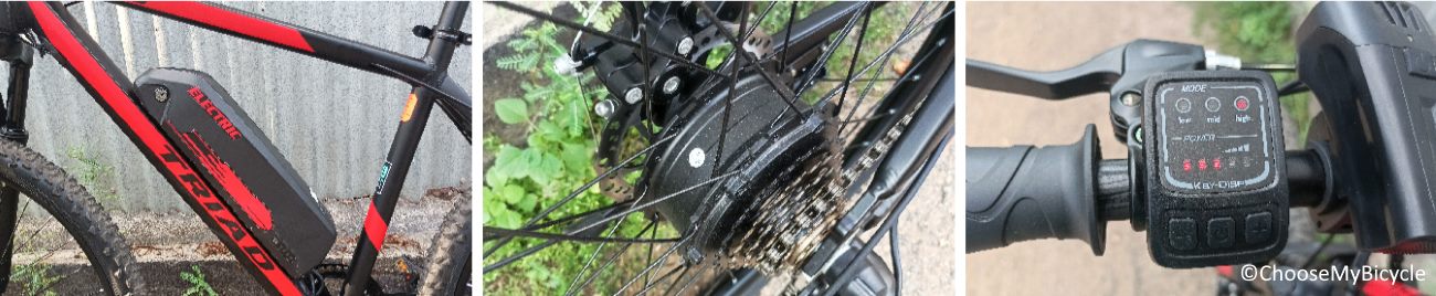 The Triad E3 Pro which I test rode came with a 1x7-Speed Shimano Tourney rear derailleur. Gears in an Electric Bicycle help in keeping up to the battery assisted speed of the E Bicycle by adjusting the pressure in pedalling. These gears are also useful when the battery charge is low or if the charge has run out, as one can use it to ride efficiently. During the test ride these gears shifted smoothly and the shifters were easy to operate.