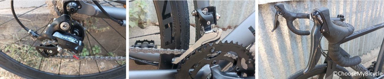 This Unirox AeRoad Pro comes equipped with Shimano Sora front and rear derailleurs. This 18-Speed Bicycle is fast when on the road, tackling climbs and flat roads with ease. The shifting was lag-free with the Sora derailleurs. The 18-Speed shifting is controlled by Shimano Sora single lever paddle Shifters which require minimal effort to shift.