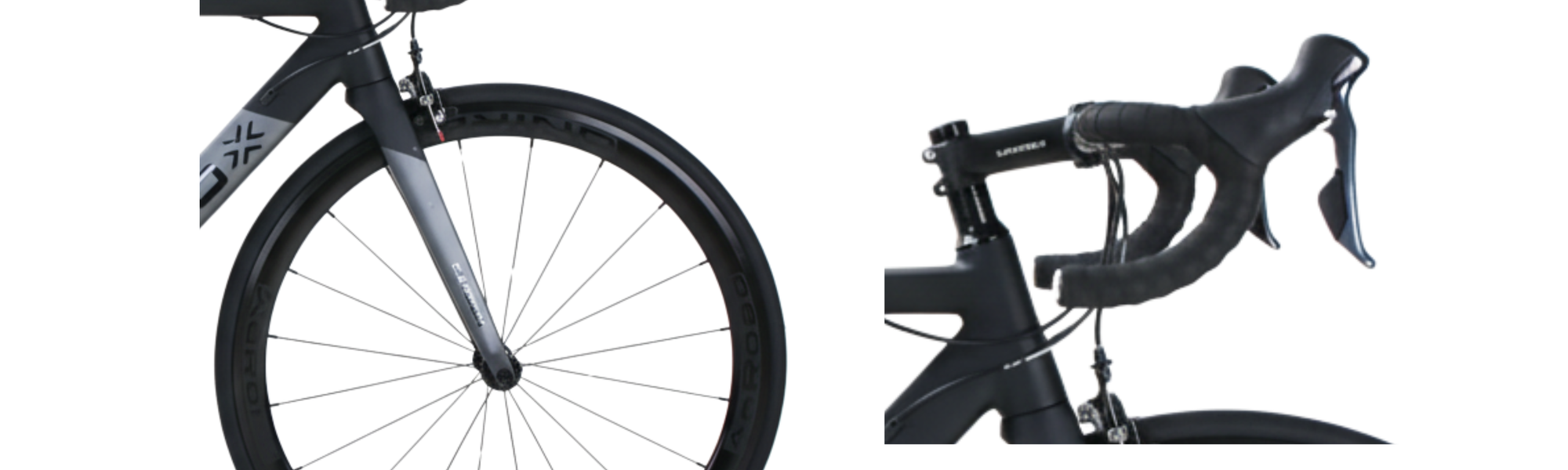 The drop handlebar adds to the bike’s control and aerodynamic riding posture, while the carbon fork stabilizes steering on fast descents and sharp corners.