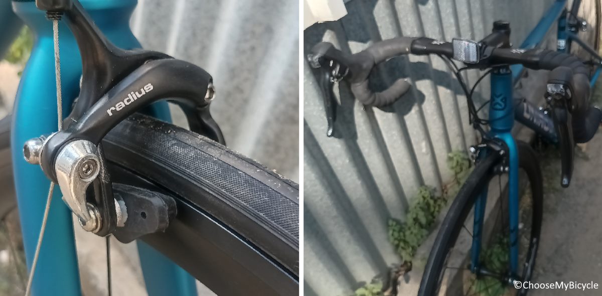 The Unirox AeThos comes equipped with Radius Caliper brakes. When tested, both interval and abrupt braking was sufficient while remaining stable and in control. The braking was effective on both dry and wet roads on the test ride. Caliper brakes are considered safer and easier to maintain for begineer to mid level Road Bicycle riders.This Bicycle comes equipped with a stock 42mm Alloy handlebar. The compact shape of the handlebar enables the rider to place their hands on the drop bars without being in an overly aggressive, strained riding position.