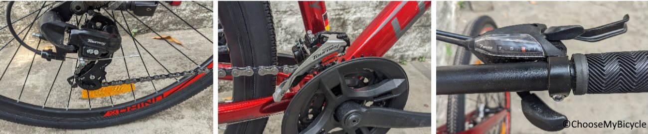 Shimano’s 21-Speed Tourney drivetrain was smooth in shifting.