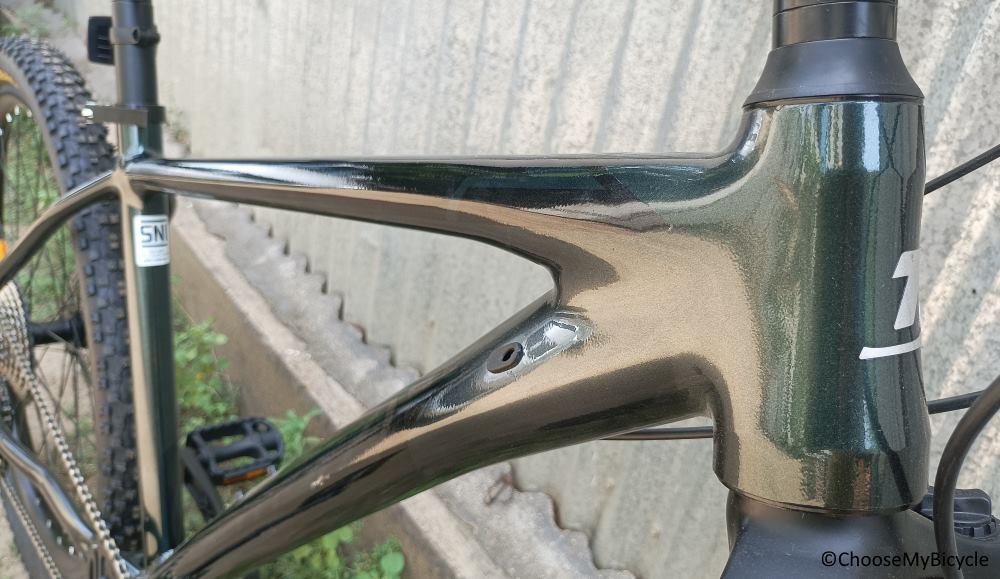 The United Detroit 5. which I test rode came in a full Dark Green frame. The gloss finish paint job and the dark shade make the Bicycle look Black and it definitely enhanced the colour scheme to make it look shiny. The internal cable routing made the Bicycle look neat and the colour coordinated rims and forks made it look aesthetic.