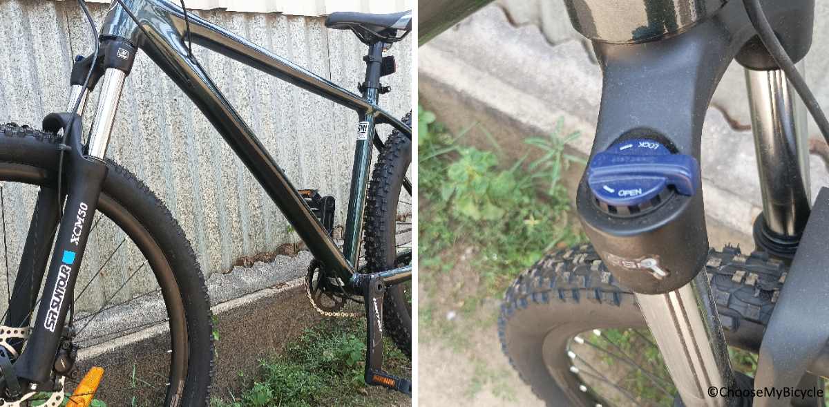 The United Detroit 5. comes with a lightweight hydroformed aluminium frame with internal cable routing. The hardtail frame has a slanting top tube, which provided an aggressive position yet gives you supreme control on trails. Both the top tube and bottom tube aren’t circular, they are flat which makes the tubes sleek and keep the weight in check.During the test ride the Suntour XCM32 Boost front suspension fork with its 12mm travel was impressive both on harsh urban roads and rough trails. The Suspension lockout was a useful feature for efficient riding on smooth and flat surfaces.