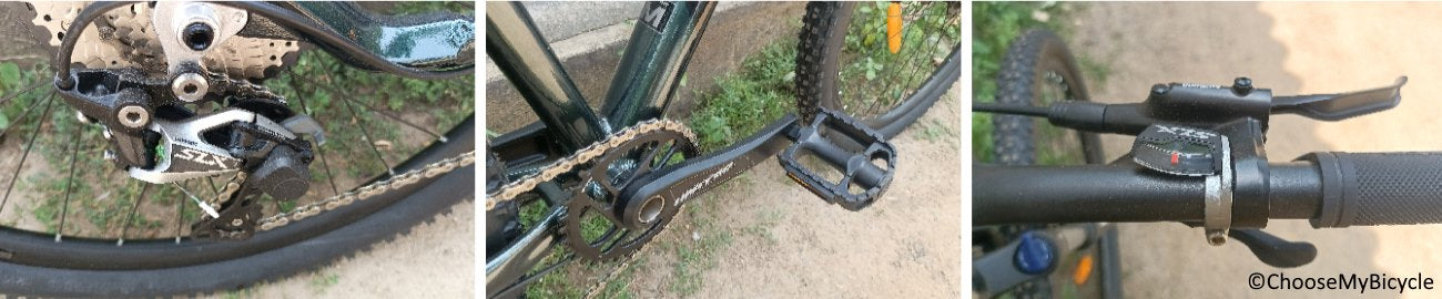 The gearing in the Detroit 5. is handled by a Shimano SLX 11-Speed rear derailleur with no front derailleur. Having 11 Gears at the rear ensures extended range of speed which provides more power. The Shimano SLX M7 11-Speed rapid gear shifters were easy to use.