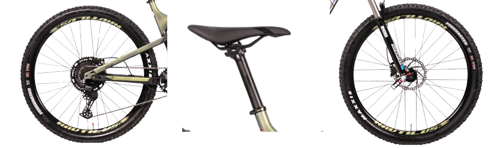 29″ wheels roll fast and maintain momentum efficiently. Maxxis Forekaster tires grip well across varied terrain. Alloy rims add durability without excessive weight. The saddle supports aggressive riding posture. Wheel setup enhances flow and stability. Designed for trail confidence.