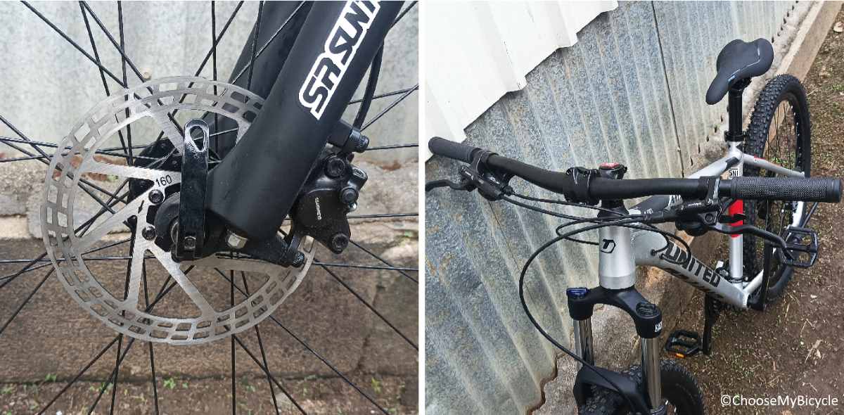 The stopping power on the United Miami 4. 27.5 is taken care of by a pair of Shimano MT2 Hydraulic Disc brakes. These disc brakes are powerful and balanced and felt safe to engage even at high speeds during the test ride.The United Alloy handlebar is lengthy with a very slight rise from the middle. This is a perfect MTB handlebar which means a comfortable and open chested riding posture giving great control over the Bicycle.