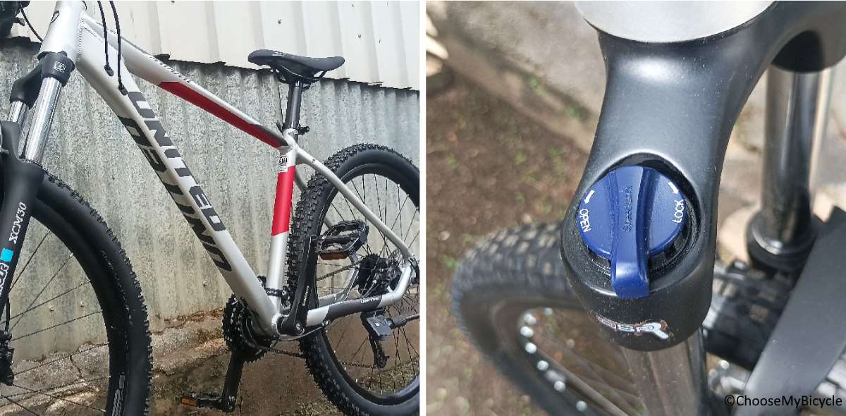 The United Miami 4. 27.5 comes with a Hydroformed Aluminium frame with internal cable routing. The Hardtail frame has a slanting top tube, which provided an aggressive rider position yet supreme control on trails. Both the top tube and bottom tube aren’t circular, they are flat which makes the tubes sleek and keeps the weight in check.During the test ride the Suntour XCM3 front suspension forks with its 12mm travel worked well both on harsh urban roads and rough trails. The Suspension lockout was a useful feature for efficient riding on smooth and flat surfaces.