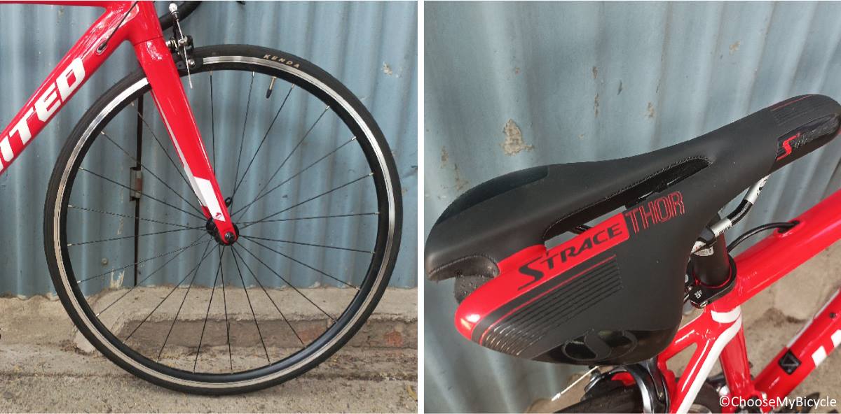 The United Vitessa 1. comes equipped with fast rolling and sleek Kenda K152 7x25C tires which are attached to stock Alloy double walled rims. The tires offered a smooth and fast ride. Cornering felt stable, allowing for crisp sharp turns while being stable.This Bicycle comes equipped with stock United Saddle. The saddle offered a level of support and cushioning that is well suited to a rider on faster, short-distance rides or long endurance focused rides.