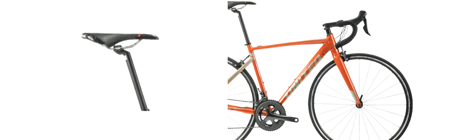 The saddle, United Strace Thor, is adequately cushioned for its class, but like many stock saddles may not suit all riders long-ride wise. Those with sensitive sit bones may consider upgrading after some miles. Seatpost is alloy 27.2 mm which helps in compatibility with aftermarket comfort options.