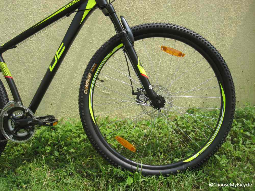 As the name suggests this hardtail MTB comes with a pair of 29” x 2.1” tires. These Compass tires are heavily treaded with an equally good doubled walled alloy rims. Some rocky parts on the trail was rolled over easily thanks to this impressive set of tires. The UT stock saddle wasn’t the most ergonomical but had enough padding to keep the rider sore free on bumpy trails. The overall ride quality was comfortable on trails.