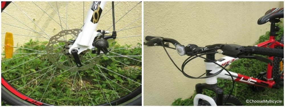 UT's design and colours have always been one step above the rest and the HT3 embodies the same. The bicycle which I test rode came in an equal mix of white and red on the frame. The black lines on the frame added a good contrast to the white colour. The gloss finish paint job was neatly done and this made sure the welded tube edges was covered up well. The saddle and the suspension forks were also colour-coded which made the bicycle look aesthetic.