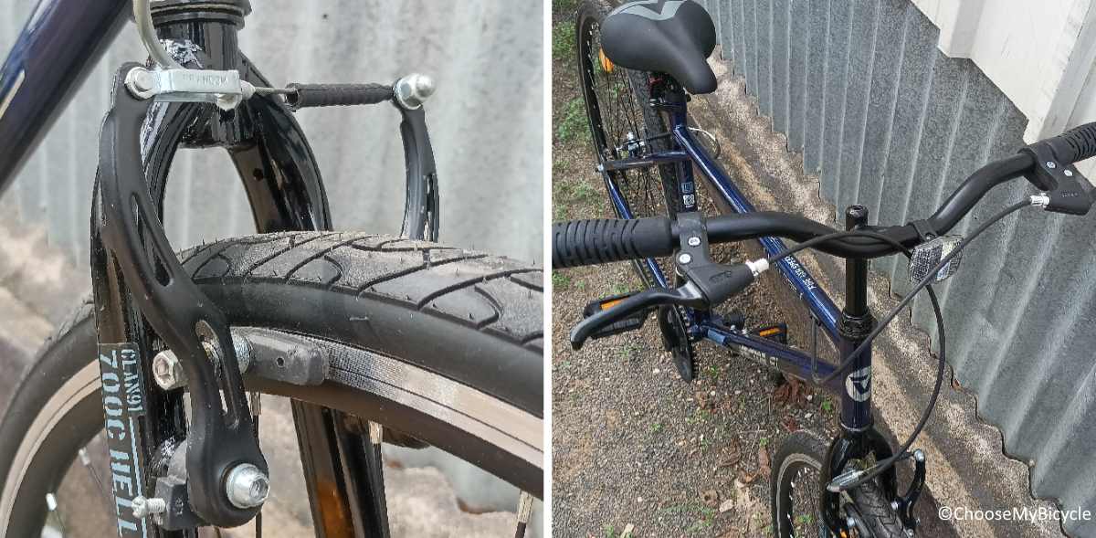 The V-brakes were powerful and balanced on dry/wet and rough city roads.