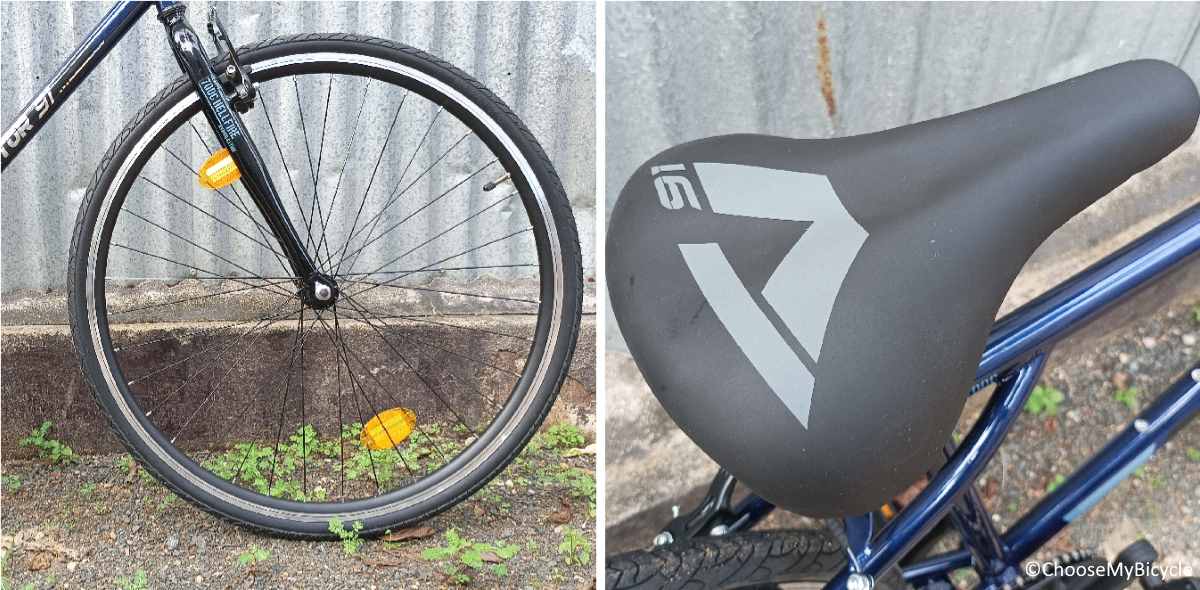 The Hellfire 7C SS has been designed with simple yet elegant graphics. The welding on the edges of the frame looked simple and neat. The Bicycle we test road had a primary colour of Dark Blue with Silver graphics. The colour-coded Saddle and Black fork match the decals which added to the overall aesthetic appeal of the Bicycle.