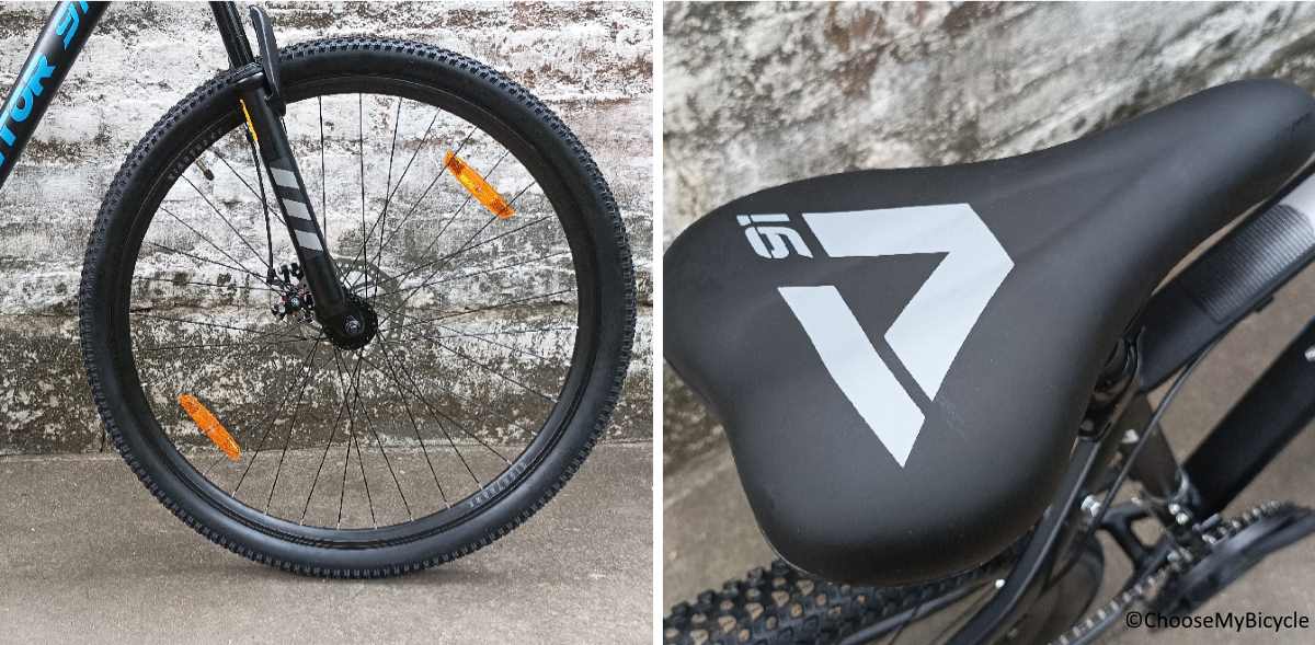 The Hartex 29” x 2.1” MTB tires on the Vector 91 Night Hawk was heavily treaded to generate a lot of traction on rough surfaces. While the 29” circumference handles the fast rolling resistance, the 2.1” width made sure the Bicycle is stable and balanced on muddy and rough roads.The stock Saddle had enough cushioning to keep the rider comfortable on bumpy rides.