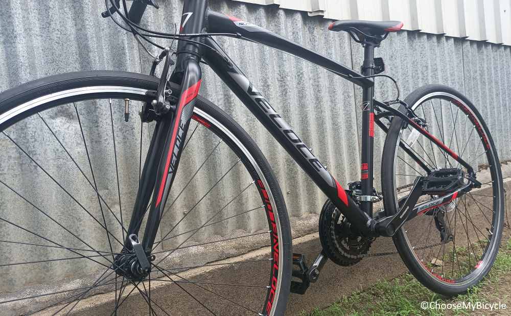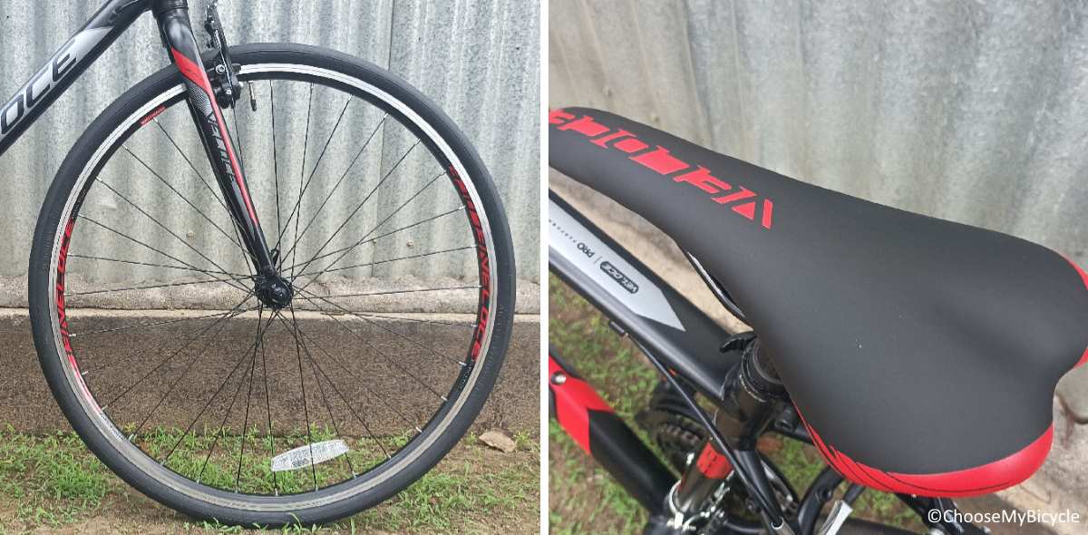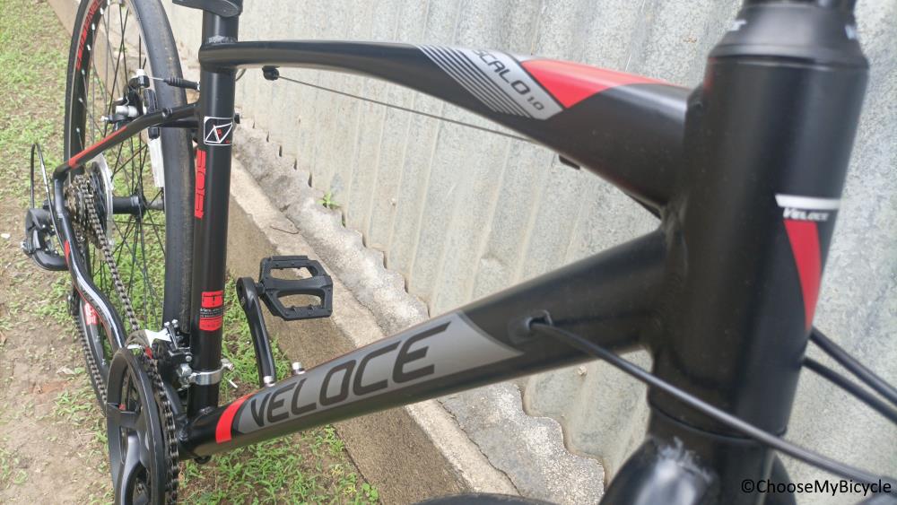 The Veloce Scalo 1. which we test rode came in a full Black frame with Grey and Red as the secondary colours for the text and graphics. The matte finish paint job along with the contrasting Grey and Red colours made the Bicycle stand out on the road. The thin tubes and colour coded saddle immensely enhanced the aesthetics of this Bicycle.