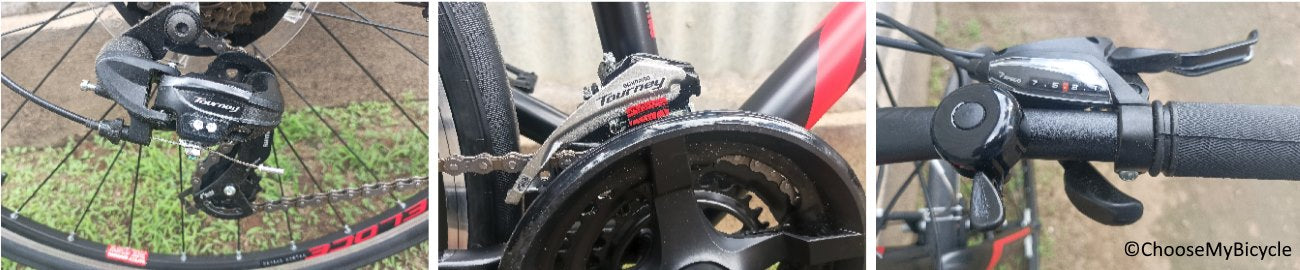 The Shimano Tourney 21-Speed drivetrain was smooth in gear shifting.