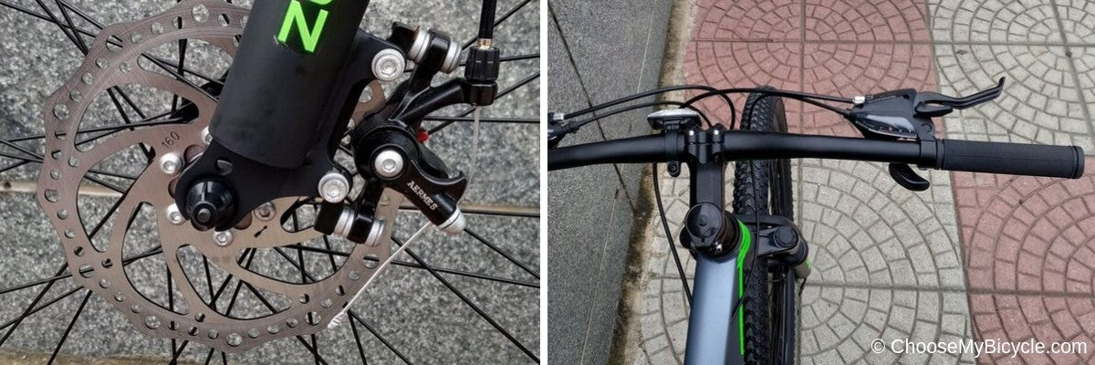 The WaltX Trail 27.5 comes equipped with a pair of Mechanical Disc brakes at the front and rear. The braking was adequate for use on Urban surfaces and mild rugged roads. While the braking felt balanced and safe, I feel that the brakes lacked in power to bring the bicycle to a complete stop. And thus, could do with a little more stopping power for precise braking. The Alloy Brake levers felt strong and are well-placed, requiring only 2 or 3 fingers to operate. The Sport MTB 68mm handlebar enables an ‘open-chested’ riding position that is comfortable. Additionally, the length of the handlebar ensures supreme control of the bicycle and quick handling and maneuvering on both Urban roads and Rugged trails. The handlebar grips are on the harder side, while this may not affect the overall performance when used on flat/paved roads, it could be uncomfortable when used on the trail.