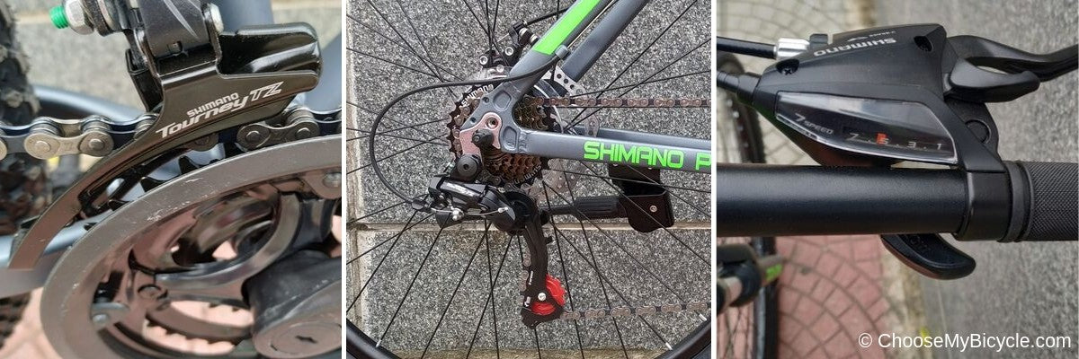 Best in category Shimano Tourney 3x7-Speed gears with easy fire Shimano shifters which are easy and quick to shift with enough range for climbing and accelerations.