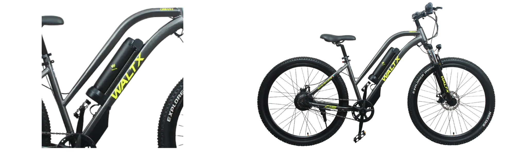 The 27.5 Ralson tires are designed for urban commuting, offering a great balance between speed and grip. These tires ensure a smooth and stable ride on paved surfaces, while still providing enough traction to handle light off-road paths. The wheel size, combined with the MTB tire profile, allows for efficient rolling, maximizing the rider's effort and battery power for extended range.The saddle is a critical component of rider comfort, and Waltx has taken care to design one that's well-cushioned and ergonomically shaped. The broad seating area and padding ensure that long commutes won’t result in discomfort, even after extended periods on the road.