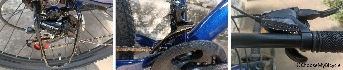 The Shimano Tourney 21-Speed derailleurs were sufficient for quick gear shifts