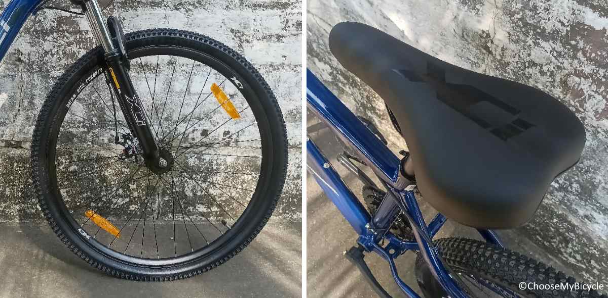 The Hartex 27.5” x 2.1” MTB tires on the XCi Hangout 27.5T 21S were heavily treaded to generate a lot of traction on rough surfaces. While the 27.5” circumference handles the fast rolling resistance, the 2.1” width makes sure the Bicycle is stable and balanced on muddy and rough roads.The stock saddle had enough cushioning to keep the rider comfortable on bumpy rides.
