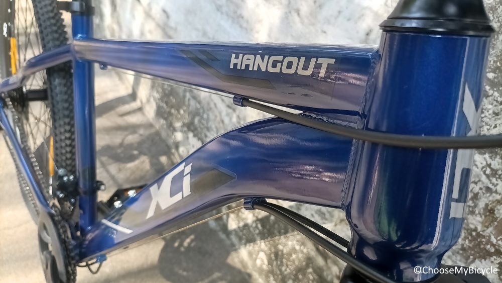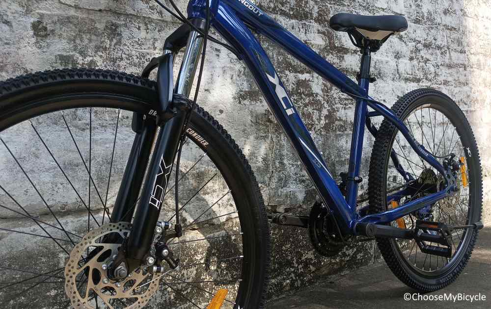 The XCi Hangout 27.5T 21S is built around a Hardtail Steel frame. While Steel is known to be heavy, this Bicycle had a good distribution of weight which was evident when riding on both flats and inclines. The geometry was standard and comfort focused with a mildly slanting top tube.We can say this Bicycle is an all-rounder and is trail friendly by the functioning of the suspensions fork. The stock suspension on this Bicycle had sufficient working travel which is capable of handling rough urban roads and flat trails.