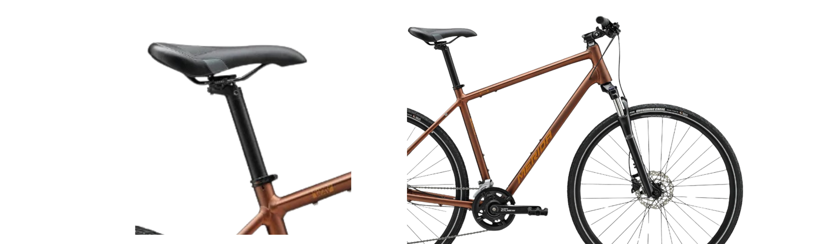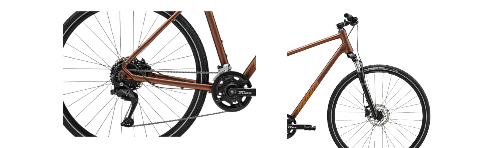 Comfort is the defining strength of the Crossway series. The SR Suntour NEX suspension fork absorbs bumps and uneven surfaces with ease, delivering a noticeably smoother ride. Paired with the ergonomic Merida saddle and comfort-focused cockpit, the bike reduces fatigue on longer rides.