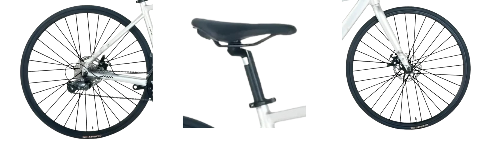 DECA alloy wheels are durable and well-suited for daily road riding. CST CZAR 25C tires strike a good balance between rolling efficiency and grip. The Java road saddle supports longer rides without discomfort. Overall wheel and contact point setup feels dependable and beginner-friendly.