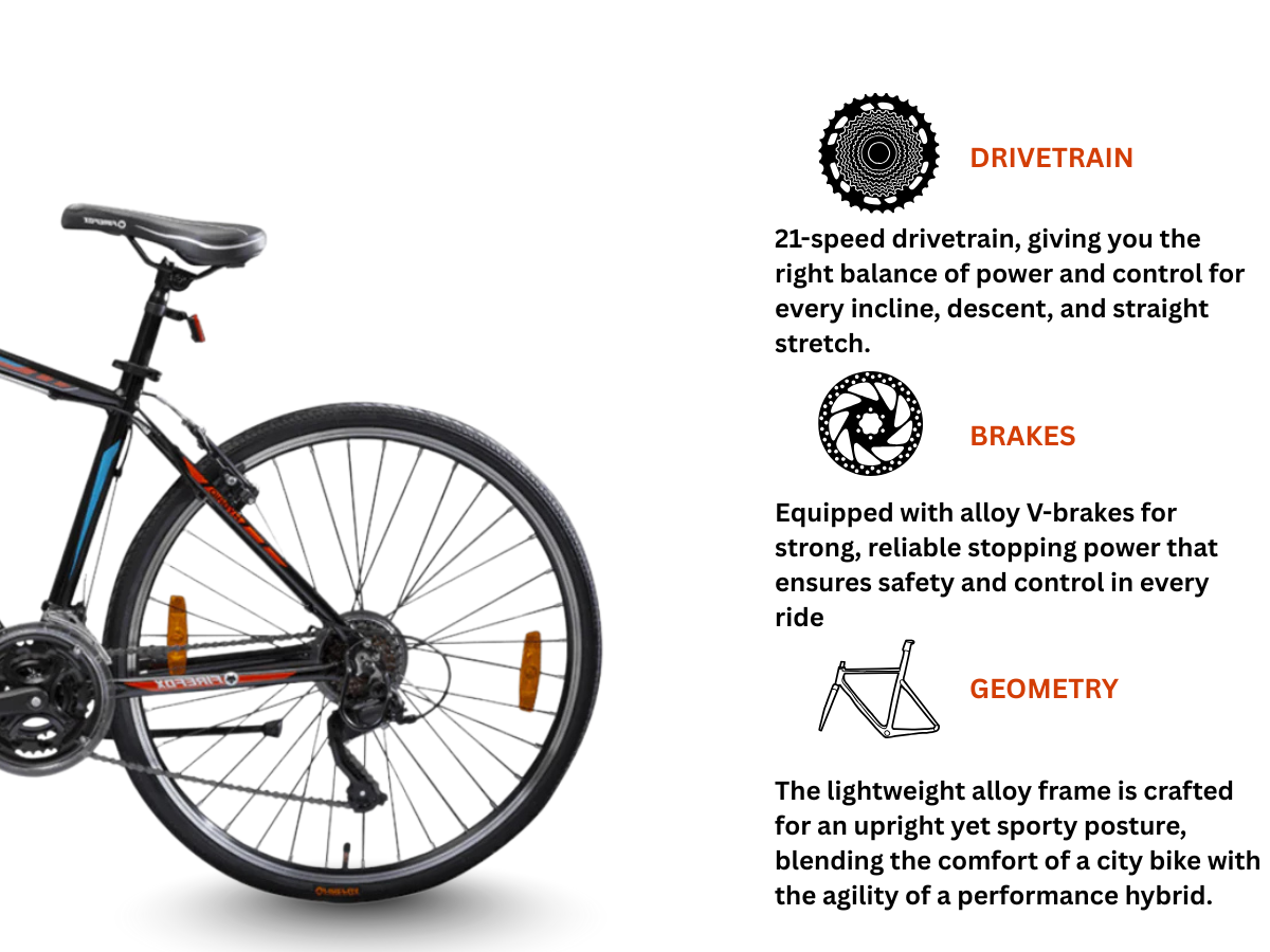 The Firefox bicycle is an Urban Hybrid which is ideal for Riding on Rough Urban Roads.