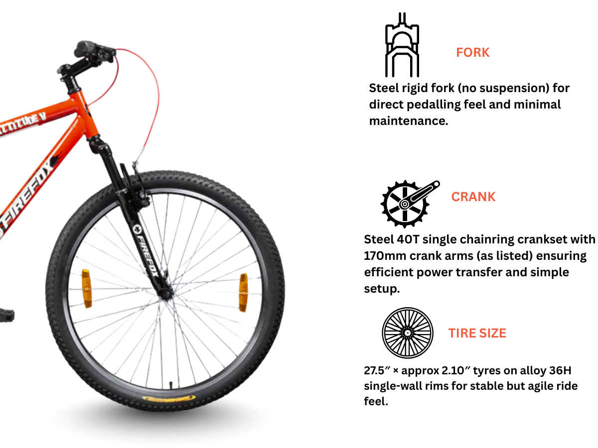 The Firefox Bad Attitude 5 27.5 is a Mountain Bike which has Steel Frame.