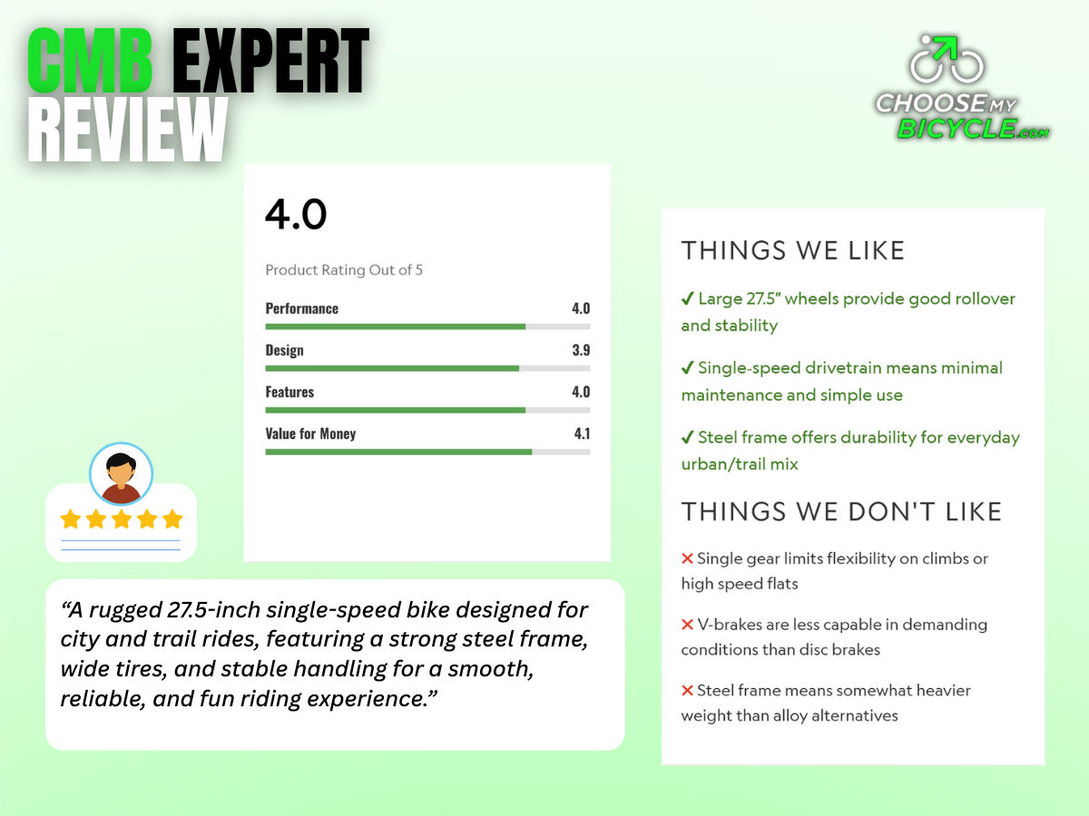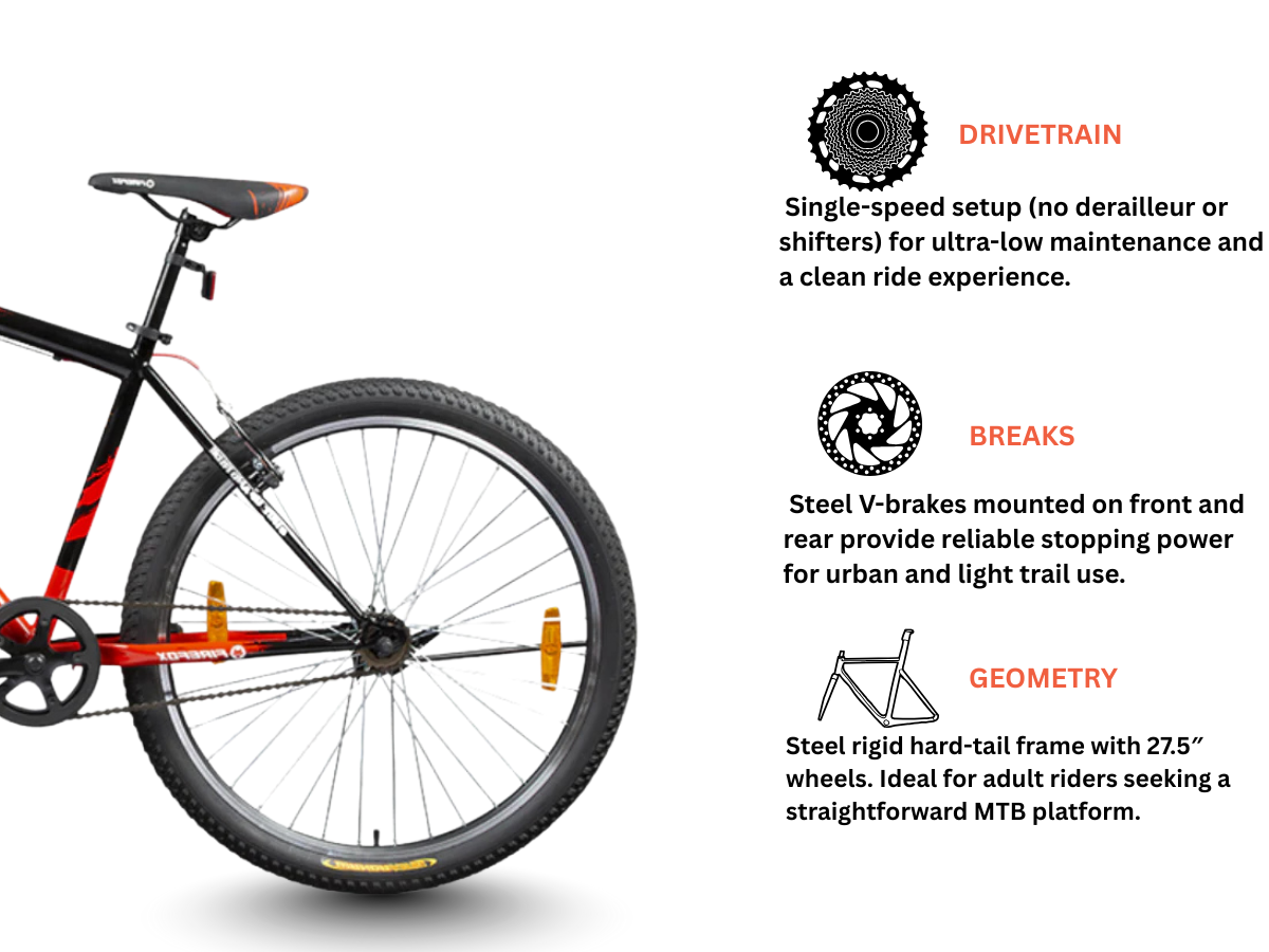 The Firefox Bad Attitude 5 27.5 is a Single-Speed Bicycle.