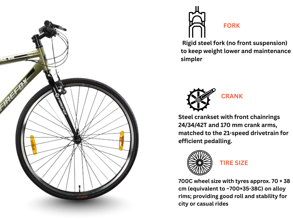 The Firefox Bad Attitude 8 is a Hybrid Bicycle which is best suited for commutes and fitness rides on city roads.