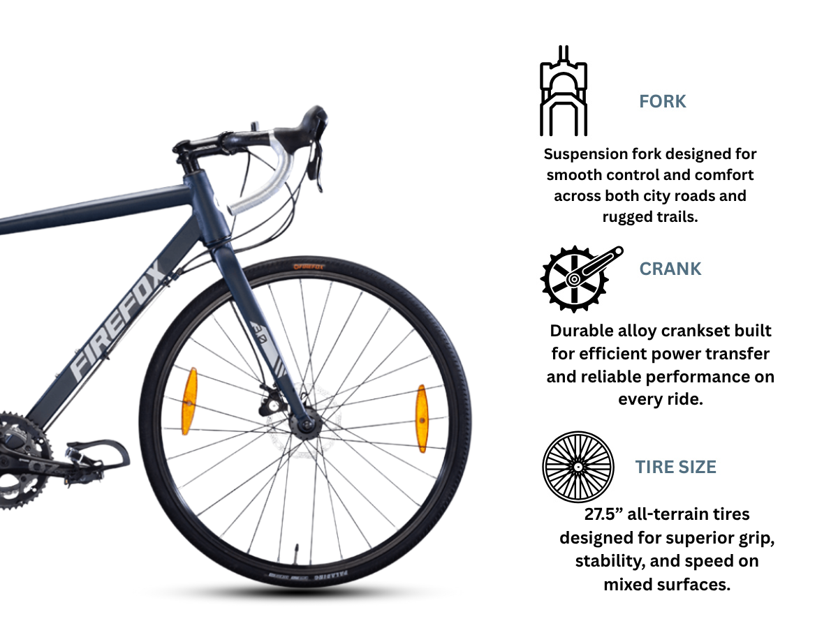The Firefox Pirate 3.0 is a Gravel Bicycle which is ideal for riding on roads as well flat trails or gravel trails.