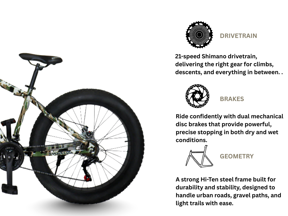 Crafted with a high-tensile steel frame, the FitTrip Mutant 26 is built to handle rough city rides and occasional trails with ease. Its sturdy construction offers excellent stability, while the sleek, sporty design adds a bold touch to your everyday rides.