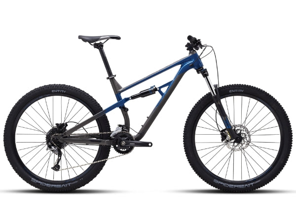 The Polygon Siskiu D5 comes with a pair of Entity Spyderbait 27.5" x 2.25" tires which are attached to Double Wall Alloy Rims.