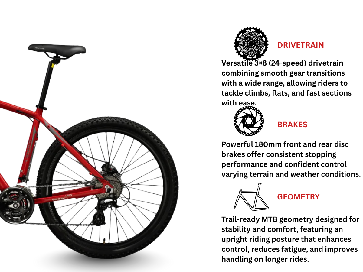 Ideal for beginners to intermediate riders exploring trails and daily rides.