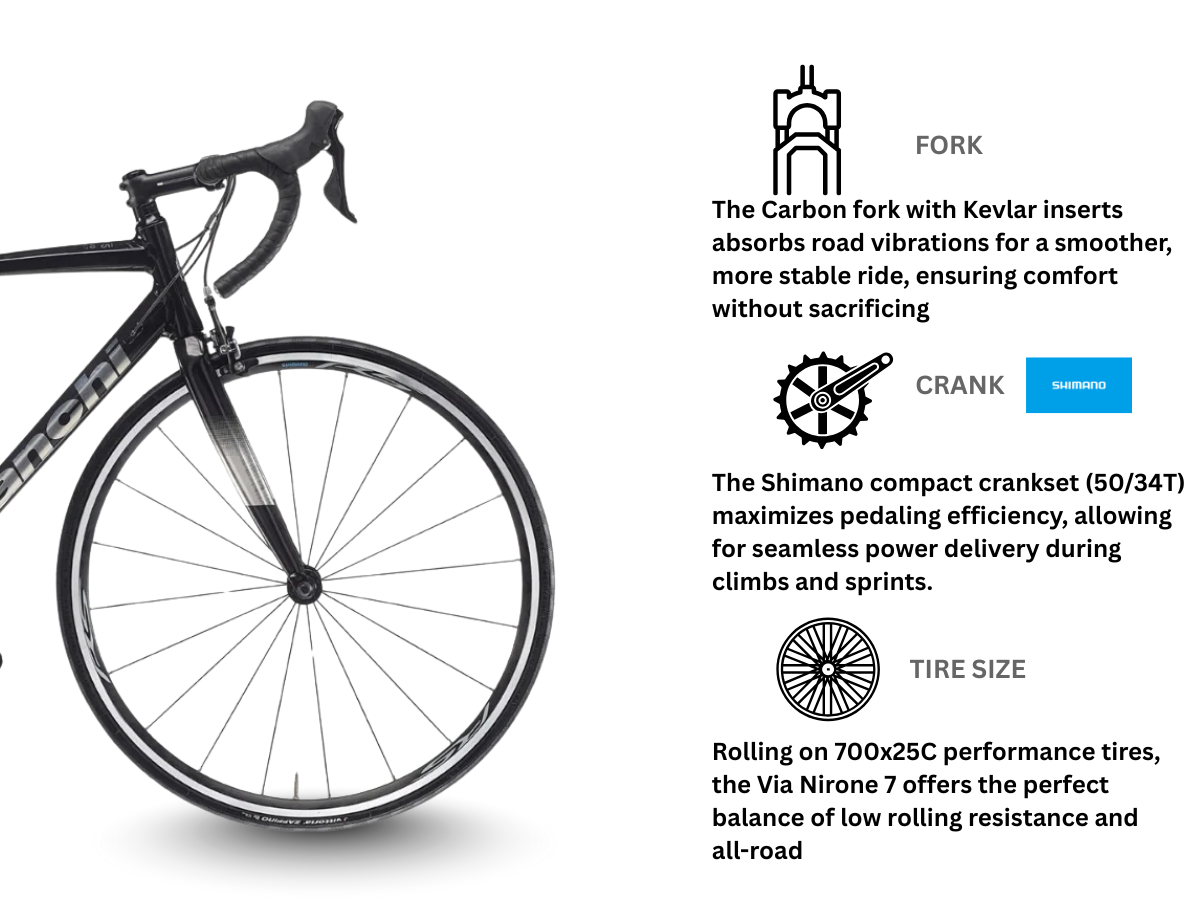 The Bianchi Via Nirone 7 Sora has a Bianchi Full Carbon Fork.