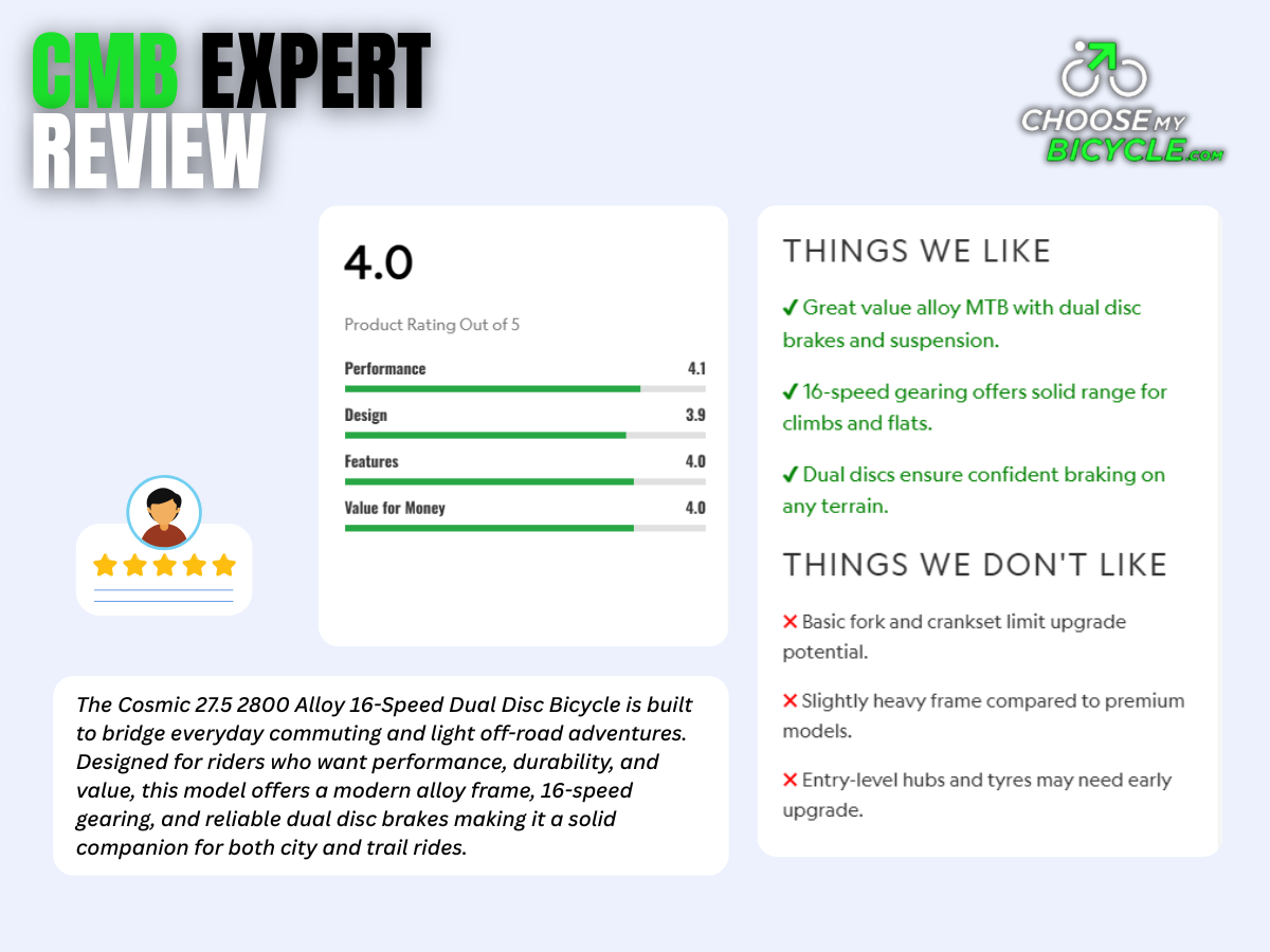 Cosmic 27.5 2800 Alloy 16 Speed D/Disc Bicycle: CHOOSEMYBICYCLE EXPERT REVIEW