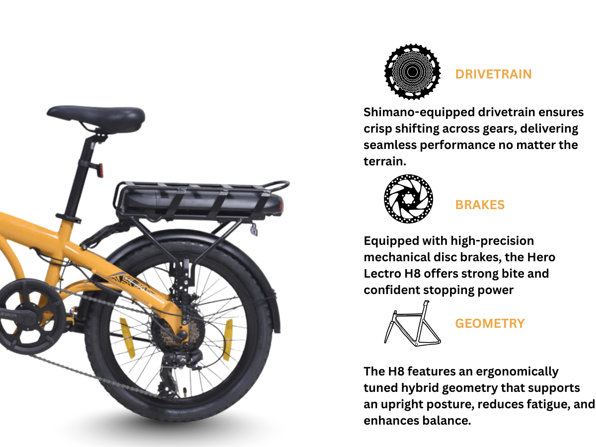 Rs.34999 Hero Lectro positions the H8 as an affordable, value packed electric bicycle offering strong features.