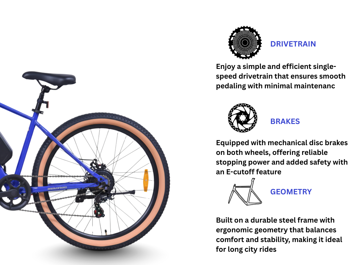 • Long Battery Life – Covers up to 60 km on a single charge.