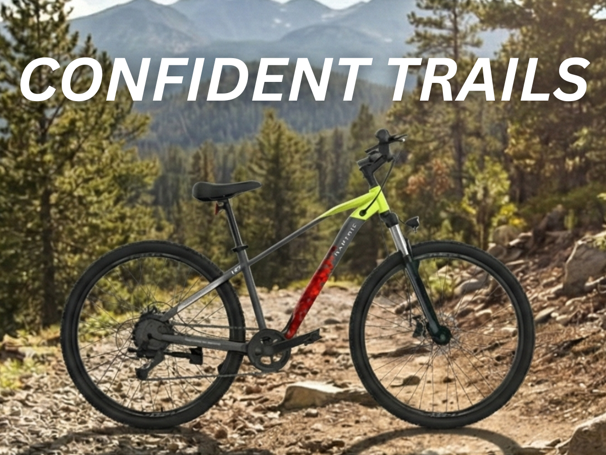 27.5” MTB tires provide stability and grip on mixed terrain.